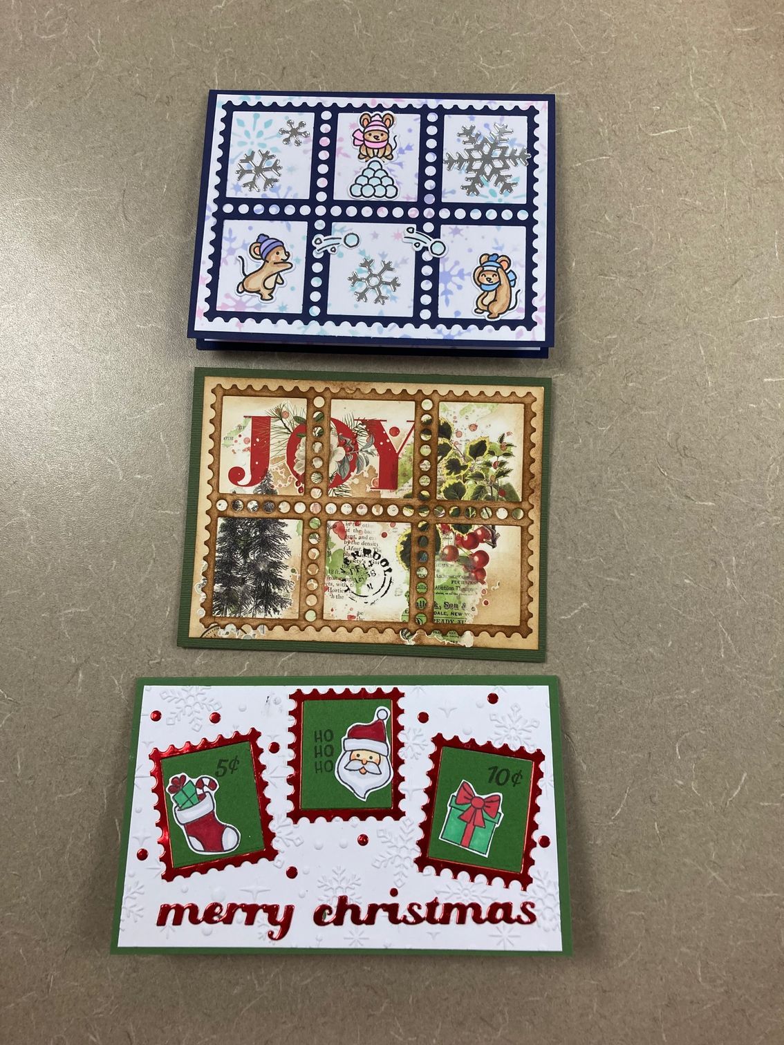 Do you need some more ideas for your Christmas cards? Betty to the rescue. These cards will be a perfect answer. They are made using Newton's Nook new postage grid die and an assortment of small sampler stamps that fit into the space just perfectly. You won't want to miss this class. Be sure to sign up today!! $15.00